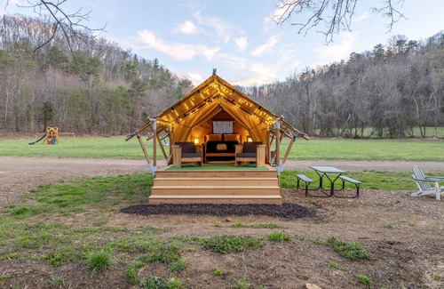 Escape to the breathtaking mountains of East Tennessee in Newport, known as the adventurous side of the Smokies! Our glamping village invites you to immerse yourself in nature without sacrificing comfort. Nestled creekside, our spacious premium safari tent is the perfect blend of rustic charm and modern luxury. You are viewing the listing for a premium campsite.