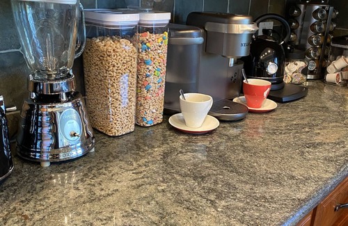This home is outfitted with brand new modern furniture, and was recently renovated to provide a luxury escape while still providing the comfort of home. From the chef’s kitchen with brand new cookware and overlooking the golf course, to either of the the two large living areas equipped with Samsung entertainment system, and large comfortable couches perfect for viewing movies, sports, or just catching a show. The kitchen provides every gadget or utensil needed to whip up a meal or sweet treat. Anything goes great in the formal dining area, with a lovely barn style table seating up to 6 guests with room for more.