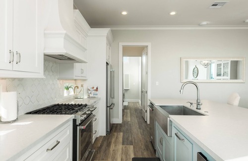 Four serene and professionally decorated bedrooms provide a luxurious retreat for your entire group. With three king beds and a custom bunk room, there are elegant and comfortable sleeping options for everyone.