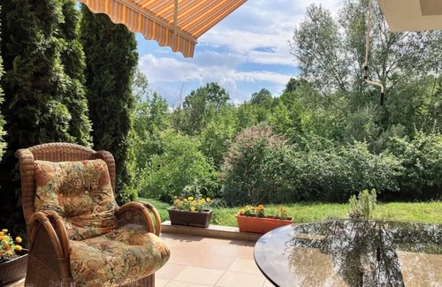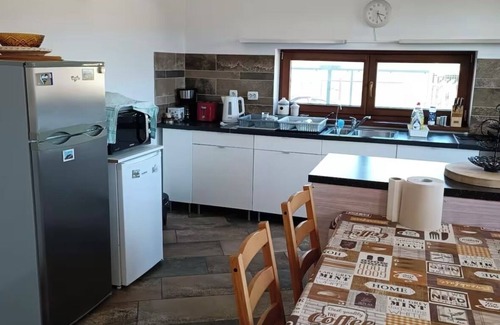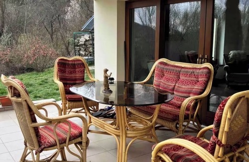 Villa with three bedrooms plus huge loft studio set on three floors, fully equipped kitchen, three bathrooms, one toilet/utility room, real log fire, balcony and 2000 sq metres land. Terrace with amazing views of the hills and mountains. 20 minute walk from the centre of Campulung, 10 minute from the train station. Great for walking in the surrounding hills, cycling, mountaineering, skiing, monasteries. One hour from Bran Castle, Piatra Craiului mountain reserve, 1and 1/2 hours from Brasov. Namaiesti and Corbii de Piatra monasteries are close by, Curtea de Arges monastery is 50 km away. Campulung and the surrounding are a hidden gem in the foothills of the Carpathian mountains, away from the overcrowded Valea Prahovei, easier to reach by car via the Bucharest-Pitesti motorway. It is only 2 and 1/2 hours by car from Bucharest. My property is a peaceful oasis in the middle of orchards where you can totally unwind in the comfort of a high quality modern villa.