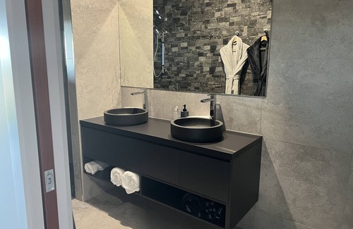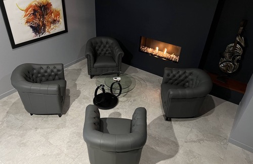 Harris and Lewis is designed for privacy for two couples, each with their own private retreat with Escea Fireplace, bathroom and kitchenette with a shared common area with open bar and fireplace.