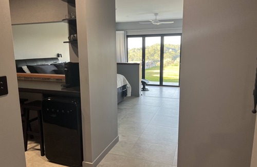 Skye has two bedrooms and ideal for one couple, or two who know each other. Full sized kitchen and lounge opening on to large undercover deck, with fireplace, and on to the heated pool.