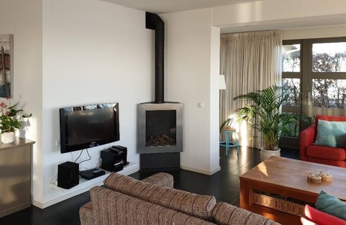 - De living heeft een grote lichte serre met uniek uitzicht op het meer, een grote zithoek met gas-sfeerhaard en een royale gezellige eethoek met grote eettafel.