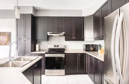 ● A fully equipped kitchen with modern appliances, essential Pots & Pans, Utensils, Essential Kitchenware, stylish countertops, and plenty of space for preparing and enjoying meals with family and friends.