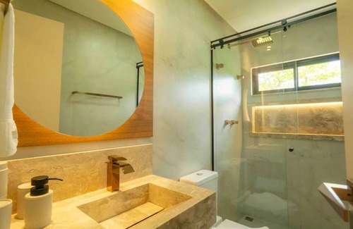 By the sea, ground floor, 5 large suites, gourmet space, home office, fully equipped kitchen, barbecue, sauna, pool, hot tub, 2 hammocks, massage stretcher, gym, laundry room, employee suite, children's toys, shade, crib. Accepted animals.