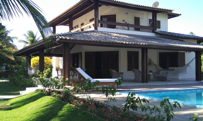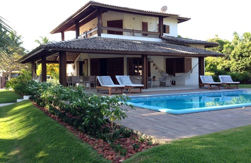 Island house with pool and foot in the sand, with 3 suites, balconies, air conditioning in all rooms, equipped kitchen, modern crockery, bed linen, bath, table and beach, washing machine, iron, hairdryer, garage , caretaker's house, garden, pergola with support for barbecue, barbecue, hammocks and a beautiful colonial-style porch.