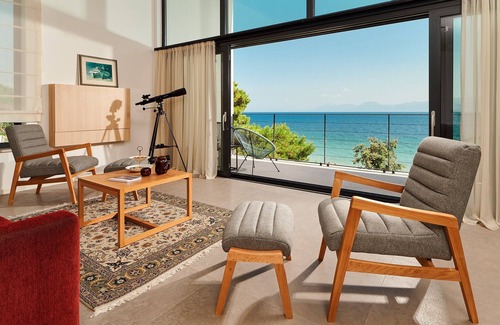 Perched directly on the beachfront, Villa Blue Oasis affords breathtaking vistas of the Adriatic Sea and immediate access to its crystalline waters. Whether lounging in the warmth of the heated pool, unwinding in the Jacuzzi, or simply admiring the panoramic views from your private terrace, each moment is an indulgence in serenity and luxury.