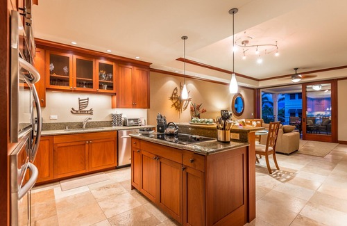 Villa Makai is a well-kept and clean home decorated with Tommy Bahama furniture and top quality electronics, including smart TVs, a laptop computer, printer, Wi-Fi, and home theater system. A wide variety of kitchen appliances are available to make you feel right at home. Wake up to complimentary cups of Keurig, or head to the Coffee belt or a local farmer's market to pick up your preferred beans to make cappuccino or traditional coffee using the cappuccino maker or French press. Beach toys will be waiting for you from snorkeling gear for all ages to boogie boards, beach chairs, coolers, and beach towels. Nothing is forgotten from Scrabble and Big Island Monopoly for those quiet evenings to a high chair and Pac-n-Play for young children. Extras such as binoculars, first aid kit, and night lights to comfort the little ones are all included.