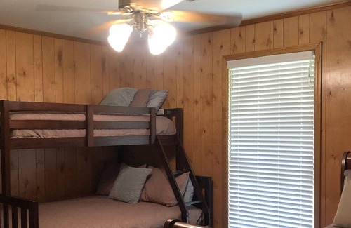 Close the laptop and leave the stress of life behind you at this beautiful 3 bedroom 2 bath lake house. Super private spacious inside and out. Every single amenity you can imagine awaits you. You and your 9 guest will have this entire 1,800 sqft to yourself. The master bed and bath are upstairs with complete privacy, with your own balcony. Just off the living room is the main deck with stairs to the lake. At the bottom of the stairs is a spacious and open deck. Getting in and out of the lake is simple with steps on the deck from the water. The kitchen and living room is open and spacious with every cooking nook needed. This house sleeps 10 max. This spacious room with plenty of parking would be great for a wedding reception, birthday gathering, family reunion, and much more. Book your stay today!