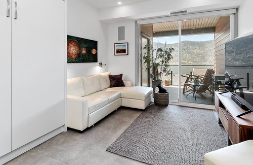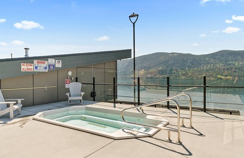 and is perfect for 2 people. Sleeper sofa can accommodate 1 adult or 2 small children. Enjoy the breath taking lake views from your private deck - take a dip in the pool or warm up in the roof top hot tub. Short walk to the beach, lots of hiking trail to explore. 15 minutes to down town Kelowna, 10 minutes to the Airport and 10 minutes to UBCO.