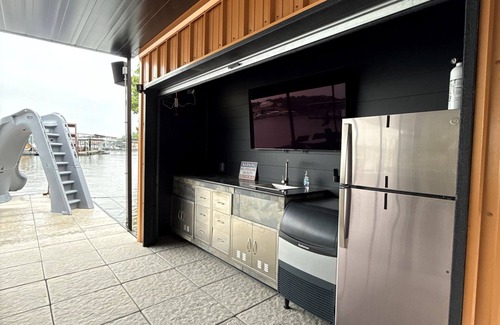 Luxury at its finest. This amazing lakefront home is an architectural masterpiece. There were no details missed in the construction of this home and outdoor spaces. 5800 square feet of living space provides an unbelievably comfortable vacation home for the most discerning of guests. Heated outdoor pool with huge patio complete with outdoor kitchen and pool area bathroom/changing room. Multi-tiered concrete tile and steel decks provide ample space for everyone to enjoy the views from our quiet secluded cove. Above ground hot tub and fire pits for your group to unwind and relax at this 5 star property. Brand new 4100 SF dock with huge covered entertainment area and a boat slip for guest use. Dock has TV, sound system, bar area, water slide, ample outdoor seating and table area. There is also a natural private beach area adjacent to the dock which is almost unheard of. This is truly one of the most desirable properties on the lake and has been host to celebrities and professional athletes. Located just off the main channel in a completely protected cove in the highly sought after Porto Cima subdivision at MM 13, this home has it all.