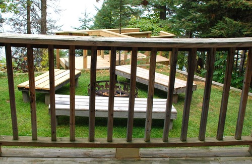 A private campfire ring overlooking lake allows for stargazing, s'more sharing and tall tale tellin'.