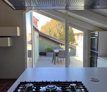 Luxury Langhe Loft offers accommodations in La Morra, 29 miles from Castello della Manta. This property offers access to a balcony, free private parking, and free Wifi. The apartment offers a shared lounge. Offering a terrace and mountain views, the spacious apartment includes 2 bedrooms, a living room, satellite flat-screen TV, an equipped kitchen, and 1 bathroom with a bidet and a shower. Towels and bed linen are offered in the apartment. The property has an outdoor dining area. A mini-market is available at the apartment. The area is popular for cycling, and bike rental is available at the apartment. Cuneo International Airport is 22 miles from the property.