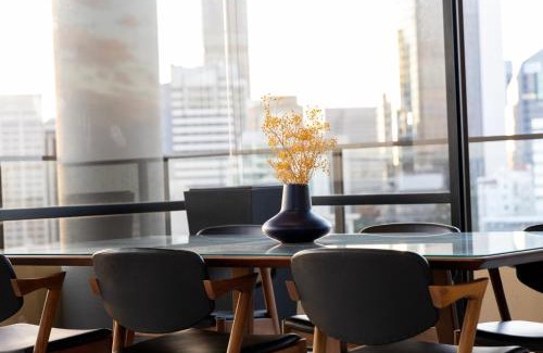 The Luxury Large 2 Bedroom Apartment Panoramic City Views! in Brisbane offers a spacious layout with two bedrooms and two bathrooms. The apartment includes a living room, balcony, and a fully equipped kitchen.Modern Amenities