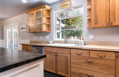 As mentioned earlier, the home also features a beautiful grassy backyard with fruit trees (apples, cherries and peaches), a covered patio and fire pit and a propane BBQ grill. This is a very comfortable and ideal place to stay with family and friends for all occasions.