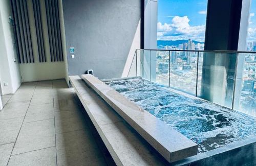 Luxury Lucentia Residence Bukit Bintang KLCC By IZ features a rooftop pool and a sauna, as well as accommodations with a kitchen in Kuala Lumpur, a 9-minute walk from Berjaya Times Square. Located in the Pudu district, the property provides guests with access to a hot tub and a fitness room. There's a children's playground and guests can make use of free Wifi, free private parking, and an electric vehicle charging station. The apartment complex will provide guests with air-conditioned units offering a wardrobe, a kettle, a fridge, kitchenware, a safety deposit box, a flat-screen TV, a terrace, and a private bathroom with a hot tub. At the apartment complex, some units are soundproof. At the apartment complex, units have bed linen and towels. Sightseeing tours are available in the area. Kids pool is also available at the apartment, while guests can also relax in the garden. Starhill Gallery is 1.1 miles from Luxury Lucentia Residence Bukit Bintang KLCC By IZ, while Pavilion Kuala Lumpur is 2 miles away. Sultan Abdul Aziz Shah Airport is 14 miles from the property, and the property offers a paid airport shuttle service.