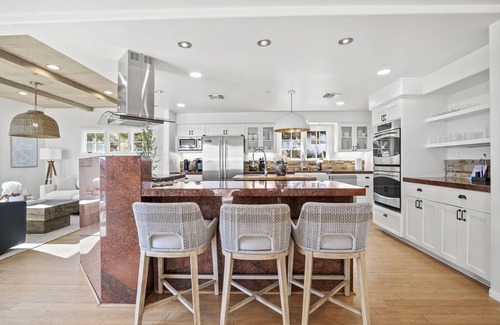 Culinary enthusiasts will delight in having two fully equipped kitchens featuring state-of-the-art appliances and a deluxe 6-burner BBQ grill. Each kitchen is equipped with more than enough silverware, dishware, and cookware for up to 16 guests. Enjoy al fresco dining with family and friends as you savor the ocean breeze and the scent of blooming flowers surrounding the property.