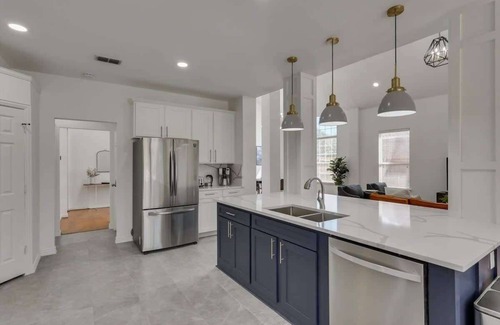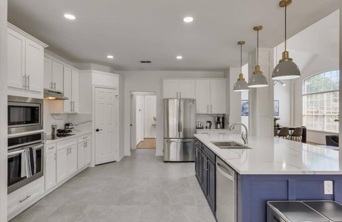 Situated in the highly sought-after neighborhood of Westwood Shores in Rowlett, your vacation home will be in a growing up-scale community, located right by Lake Ray Hubbard. There is a very special Bass Pro Shop located right here by the lake, offering great views, shopping, an aquarium, arcade, onsite restaurant, and a private sand beach. There are also many local parks and trails nearby. You’ll also be 40 minutes to DFW Airport and 30 to downtown Dallas.