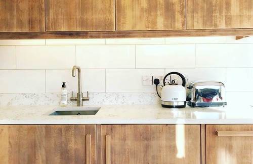 We've thought a lot about what our guests will need, so the kitchen is well equipped with quality crockery, glasses etc. You'll find a large & small cafetiere, an electric milk heater/frother and good ground coffee. Good quality, high thread count linen is used, along with luxury soft towels, goose down duvet & pillows. A king size pocket sprung mattress ensures a great night sleep.