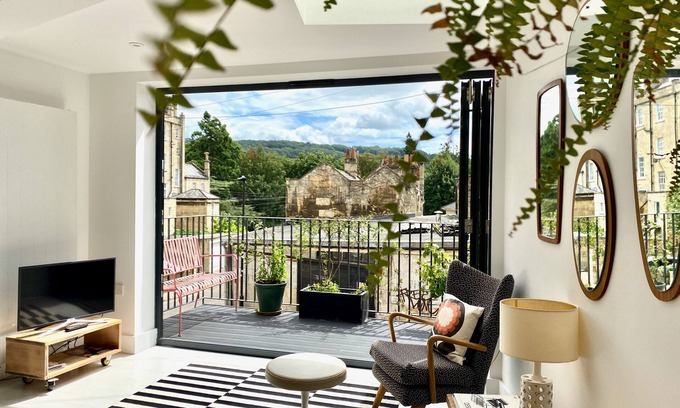 Walcot Loft is a brand new, architect designed little mews house, with its own parking space, in the centre of Bath. Sunny & light living room, and a balcony with great views.