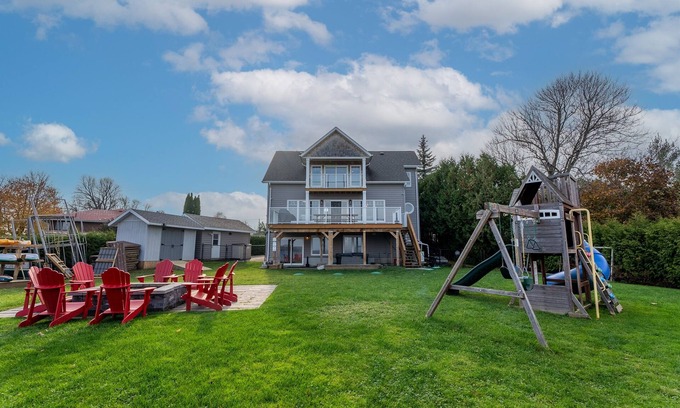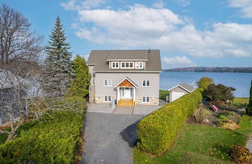 *4 SEASONS COTTAGE*Newly built custom luxury cottage, with brand new beds, mattress, furniture and furnishings. Cottage right on the lake , great fishing right off the dock, amazing boating, east exposure provides the best sunrises right from master bedroom, bon fires lake side, all bedding, linen and towels provided, all life jackets provided, tankless BBQ, ice fishing is available in winter, large hottub, pool table, ping pong, enjoy the canoe, kayaks and SUP.