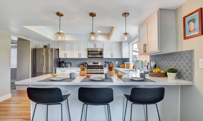 When you book your stay here, you’re free to use all 2,824 ft² of the designer-remodeled custom home, complete with a gorgeous pool, heated spa, two magnificent 8 person dining tables, eat-in breakfast bar, comfortable memory-foam beds, and more.