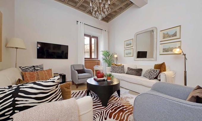 A sophisticated, beautifully furnished and well-maintained luxury vacation apartment in the Piazza Navona area. Modern kitchen, piazza views, marble bathrooms. The perfect location in one of the most characteristic neighborhoods of central Rome.