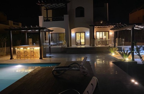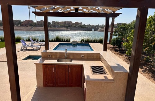 Welcome to your serene vacation home in the little paradise of El Gouna, Red sea. Newly built and furnished accessible villa is sure to impress and give you and your company the nice break you deserve.From the view of the wide open lagoon to the multiple outdoor dining and pool ares and cozy seating area, you will love staying at my villa. The rooms are comfortably furnished with two of them have their ensuite bathrooms. One of the bedrooms are located on the ground floor for those who may have mobility issues and cannot manage stairs. The house is also accessible with a wheelchair ramp access and a spacious ground floor bathroom. My friendly agent will see to your needs and answer your questions to make your stay as enjoyable as it possibly can be.