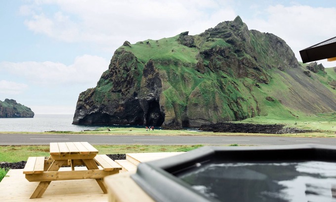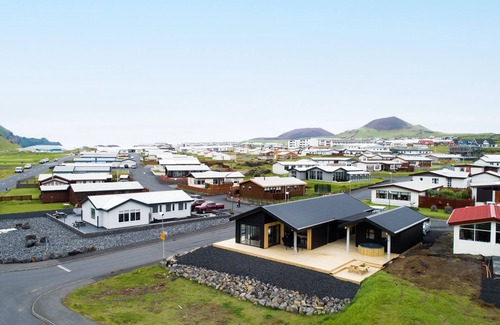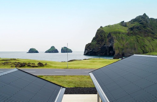 Close to the bay, this luxury villa brings it all within reach. Jump into your car and make short work of the 3-minute drive to Herjólfsdalur & the West Coast or the 5-minute drive to Eldfell Volcano (and enjoy the property's convenient onsite parking in the meantime).