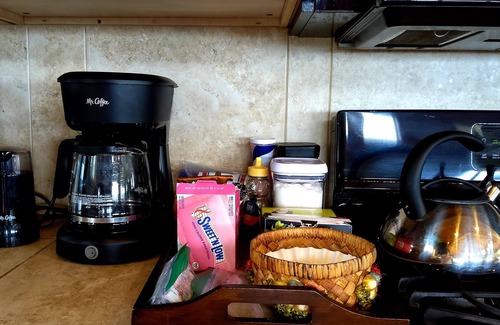 The kitchen is well stocked with appliances and utensils for comfortable family meals when you are not out exploring the island. A full laundry room provides large washing machine and dryer for your conveniences. Free WIFI access. Two-car parking in garage inside gate.