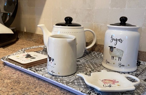 The kitchen offers many modern conveniences including a microwave, Dolce Gusto Coffee maker, kettle, toaster, oven, grill and fridge with small freezer compartment. Fully equipped for cooking if necessary and we include bin bags, tea towels and cleaning cloths etc.