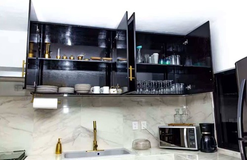 This luxurious villa sleeps six guests and features three bedrooms and one bathroom. Located just a one-minute drive from the popular Playa Tato beach, it offers convenient golf cart assistance and parking. Guests can enjoy a spacious pool the size of a jacuzzi (without jets), relax on the private terrace with loungers and a patio table, and even opt for an onsite personal chef with a $20 menu. The interior boasts glamorous marble floors and countertops, rich chocolate wood accents, and gold finishes, complemented by professional-grade stainless steel appliances and fast WiFi.