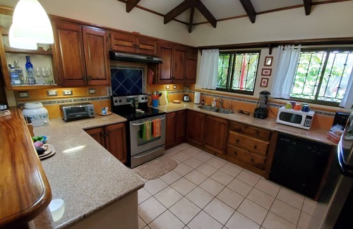 Villa Kaleta is situated on 2 forested and landscaped tropical acres, drawing butterflies, monkeys and birds to mango and lime trees, ornamental bananas and heliconias, orchids and more. Enjoy your morning coffee with hummingbirds in the lower garden terrace or happy hour with the Howler Monkeys from the upper West-facing terrace. Multiple terraces offer privacy to spread out for quiet time or siesta or to gather together as a larger group for fiesta!