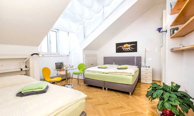 Spacious, modern, bright, and quiet room in a penthouse apartment overlooking beautiful Vienna. The room features a giant glass roof. There is direct access to a bathroom. The bathroom features a walk in shower which can also be used as a steam bath. The apartment is centrally located, with direct access to public transportation. Minutes away from the city center, shops, restaurants and night time entertainment. This apartment is located in the heart of the city, it is located in the heart of the city. It has a separate entrance and a separate entrance private apartment. You can rent the adjoining room, which is a total of up to 5 people in 2 bedrooms. (). Alternatively, you can enjoy the complete flat here: "Prater", and access to miles of open parks "Metrostation:" Nestroyplatz "(U1) - 10 seconds walk" Tabor Strasse "(U2) - 5 minutes walk" Praterstern "(U1, U2) - 8 minutes walk" Schwedenplatz "(U1, U4) - (City Center) 10 min walk "Stephansplatz" St. Stephan's cathedral (U1, U3) - 15 minutes walk (2 stops metro U1) UNO-city and Vienna International Center (VIC) - 4 stops metro U1. Other points worth noting: - WiFi and Internet access is included - Complementary starter set of tea and coffee capsules for espresso machine. - This room features two separate single beds. - Rental bikes are available 50 meters away. - Towels and full bedlinen are provided. - We charge a small fee of € 5 for each use of the steam bath. - The bathroom and balcony are shared with another room. - No smoking permitted. Spacious, modern, bright and quiet room with kitchen in a penthouse apartment overlooking the beautiful Vienna. The rooms have large glass roof windows. , The adjoining marble bathroom has a huge walk-in shower that can also be used as a steam room. The apartments are centrally located just a few minutes from the city center, shops, restaurants and evening entertainment. The subway station is directly in front of the house. The entire property offers 350 square meters. The rented rooms have a separate entrance and are separated from the rest of the apartment, so you can feel like in your private apartment. You can rent the two rooms opposite each other for up to 2 people, ie up to 5 persons. The bathroom, the balcony and the kitchen are shared between these two rooms. In the immediate vicinity is the famous Viennese Prater with its huge green area for cyclists, walking, running in the Prater main avenue invites. Subway stations: "Nestroyplatz" (U1) - 10 seconds walk "Tabor Strasse" (U2) - 5 minutes walk "Praterstern" (U1, U2) - 8 minutes walk "Schwedenplatz" (U1, U4) - (City Center) 10 min walk "Stephansplatz" St. Stephan's cathedral (U1, U3) - 15 minutes walk (2 stops metro U1) UNO-city and Vienna International Center (VIC) - 4 stops metro U1. The room has two single beds. The price includes Wifi and Internet, starter set, Nespresso coffee capsules and tea bags. Towels and bed linen are provided. For the use of the steam bath we charge a small fee of 5 € for each use of the steam bath. Rental bikes are available 50m away.