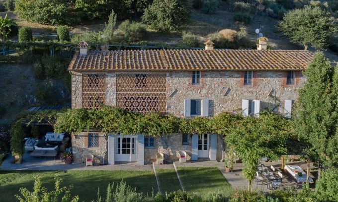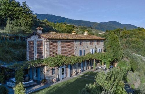Authentic Tuscan estate, managed by Belcanto Villas, located on the green hills of Lucca, overlooking the surrounding countryside up to the Apuan Alps.