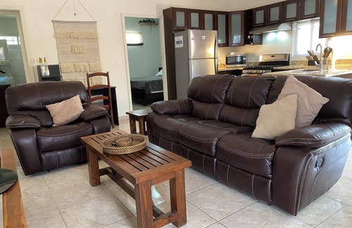 My husband and I spent a month here and we really loved it. There are ten units on the property, so it wasn't crowded, and we got to know a few of our neighbours. The pool was amazing. Very big, and very clean. The location is just a ten minute drive to the shops and services in Coronado, and a quiet beach is never far away - if you can drag yourself away from the pool! There is a nicely equipped gym and a bar beside the pool as well. The caretaker, Mike was incredibly helpful and kind enough to let us use his computer and printer when we bought our car. He goes above and beyond. This resort is one we will visit again for sure. Joyce M.