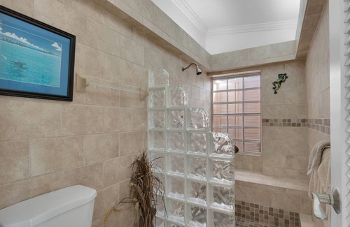 * Exceptional sunken bathroom.with rain shower.