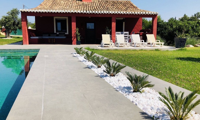 This charming renovated farmhouse for 4 people offers plenty of privacy and has beautiful views to the surrounding fields and the Atlantic Ocean. Before the house is a covered terrace where it is gorgeous. You can sunbathe at the nice big pool. ?In quinta vermelha its ideal combination of luxury and country life, the opportunity to discover the "real" and yet Algarve beach, entertainment and great shopping opportunities nearby.