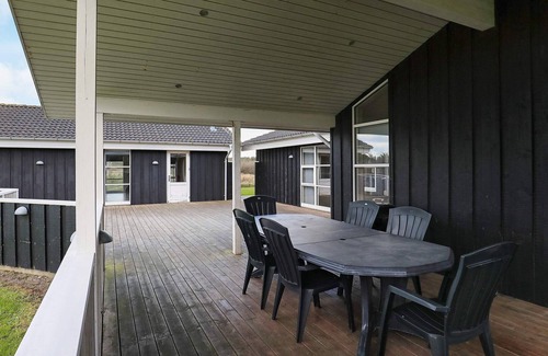 In the popular area Grønhøj you will find this well-appointed cottage with whirlpool and sauna. The cottage has an open kitchen in connection with the living room and dining area. In the living room there is a wood burning stove and there is also a heat pump installed, which ensures good and cheap heating of the house, even in the winter. For the active part of the holiday, there are e.g. activity room with billiards, table tennis and game console. The interior of the house with 10 beds makes it suitable for several families. There are three bathrooms, all with underfloor heating, and one has a hot tub and sauna. There are several places in the cottage where there is access to a nice terrace area. Here are all the options for sun and shade. Part of the large terrace is also covered, so there is plenty of opportunity to grill and enjoy the warm summer evenings. Not for rent to craftsmen and youth groups. A refundable deposit might be charged closer to your check-in date. This deposit covers utilities consumed during your stay and any additional services that may be taken. The final amount will be adjusted based on actual meter readings, actual usage of extra services, and any remaining balance will be refunded within 21 days after checkout.