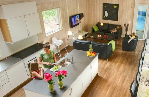 Well-appointed holiday cottage with everything your heart may desire. The house is very spacious with 2 separate sleeping areas, each with 1 bathroom and there is also an extra bathroom next to the pool area. A total of 3 bathrooms, they all have underfloor heating. All 7 bedrooms and the mezzanine have box mattresses. The pool area has a large swimming pool, water slide, large built-in whirlpool and sauna for 4-6 persons. The living room has a tasteful decor with modern furniture, wood-burning stove and flat screen TV. On the other side of the centrally located dining/living room you will find the activity room with darts, table tennis, table football or billiards. There is also a bar and a stereo system for entertainment. For the children there are PlayStation 2 and 4 (no games). The large plot, that surrounds the house, has a sandpit and swings. Large, open terrace suited for barbecues. Due to the size of the house the price for final cleaning on this Skanlux cottage deviates from the listed prices. Payment for consumption, cleaning and deposit must be in cash to the landlord at the house. No letting to youth groups.