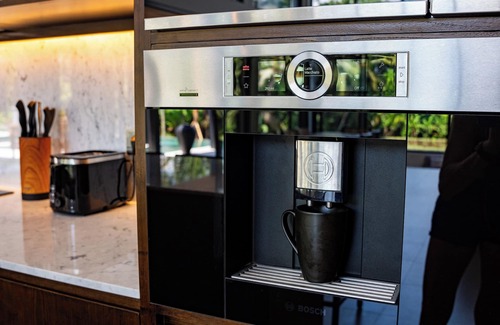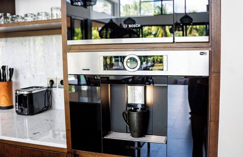 Our modern, western-style kitchen is fully equipped with everything you need, including a built-in espresso machine, oven, induction plate, fridge/freezer, microwave, and dishwasher. Reverse osmosis makes the water safe to drink from the smaller faucet fitted on the kitchen sink. And of course, there is ice out of the fridge - a rarity in Bali. Please be sure to read our house manual for instructions on how to operate the appliances.