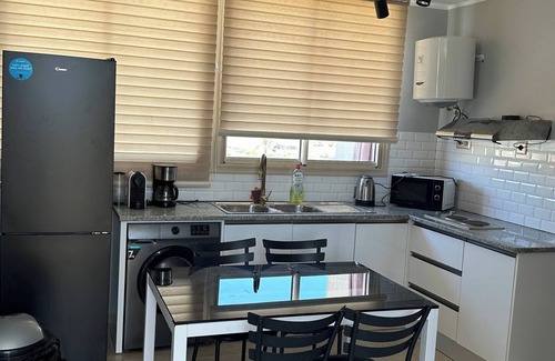 But relaxation extends far beyond the bedroom walls. Step inside the fully-equipped kitchen, stocked with all the essentials you need to whip up delicious meals. Savor your culinary creations on the private terrace, the true star of this apartment. Imagine breathing in the fresh sea air as you dine al fresco, mesmerized by the stunning oceanfront panorama.