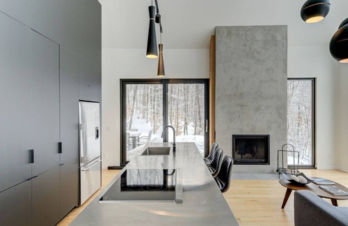 Located in Lac superior, within a couple of minutes by car from the ski resort Mont-tremblant, this beautiful and spacious unit offers a luxurious and comfortable experience with modern amenities. The Chalet features an open design with high ceilings and bay windows, ensuring constant natural light and breathtaking views of nature from morning to night.