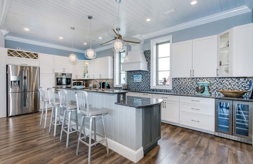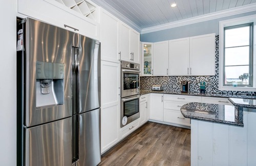 Due to the 11-inch concrete ICF walls, the home will be quiet and the Geothermal air conditioning will ensure the house stays cool/low humidity during the hot Summer months. Our Turtle Spa house faces the Gulf of Mexico with gorgeous views of the emerald green water and sugar white sands! A Roof Top Deck enables the best island views and sunsets! This beach house is built to have all the extras, including a Chef’s dream kitchen, plus a smaller Prep Kitchen on the sleeping level. Other extras include a Thermasol steam shower which is located in the Master Bath shower located on the top floor. We also have an elevator available if needed for a fee. This home also offers a Gas grill and XL Primo Smoker. For your enjoyment, the yard is beautifully landscaped and is located in a quiet residential area. Please message for monthly discounted rates. Monthy discounted rentals are not offered for the peak Summer months.