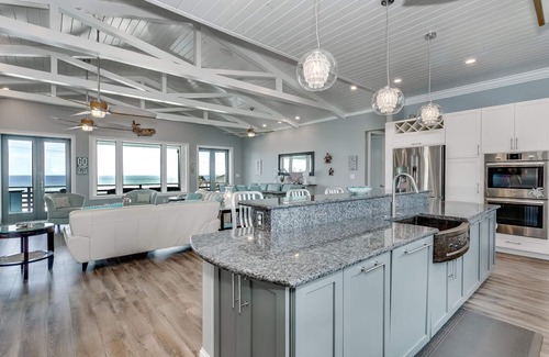 Our luxurious beach home is back on the rental market! “Turtle Spa House” is located at 1409 Ariola Drive on Pensacola Beach, Florida. This gorgeous home is designed for a multitude of guests to enjoy a spacious home with over 8500 sq feet of house and decks! The main living area is located on the 3rd floor to maximize the spectacular views of the Gulf of Mexico!