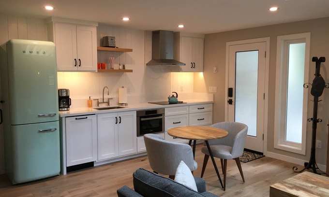 Studio 88 is a luxury studio apartment just 3 blocks from campus in the area’s best UofO neighborhood. The surrounding area is beautiful, safe and quiet. It is an entirely separate 400sf living space with complete privacy. Self check in/out. There is a King bed with high-end luxury mattress, a full kitchen and private outdoor space. There is no carpet and we clean all counter and other such surfaces with disinfectant for each guest. Bed is triple sheeted for your peace of mind. Parking is available in the driveway right in front of the unit. Great restaurant options are just a short walk away in addition to everything the campus has to offer. We do not allows dogs (sorry about that).