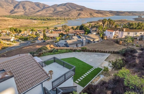 This unit offers stunning lake and mountain views, along with a spacious private balcony perfect for sunset watching. It features a full bathroom, walk-in closet, and a partial kitchen. As part of a larger home (guest suite), the unit has its own entrance at the back. Inside, there's a queen bed, sofa, coffee table, and TV, with an optional twin floor mattress available. Conveniently located 20-25 minutes from San Diego's top attractions, it's an ideal retreat for relaxation and exploration.