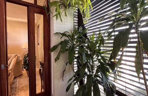 This apartment is situated on the 3rd floor and features a unique two-level layout. The first level encompasses a bedroom, kitchen, and living room. On the second level, you'll find an additional bedroom, an open kitchen, a grill area, spacious terrace and a captivating water garden complete with tropical fish and Lilly pads. This design provides a distinctive and luxurious living experience.