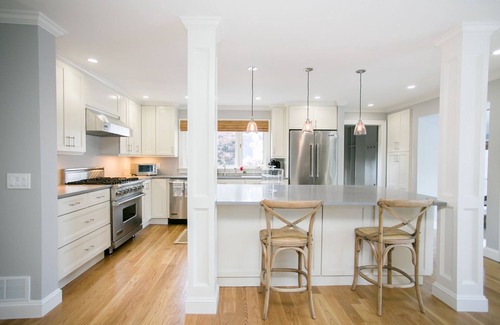 Remodeled six bedroom home with separate guest apartment and pool. Centrally located to Yacht Clubs, downtown shops, restaurants and Ocean Ave. Nice open floor plan, gourmet kitchen with stainless steel Viking appliances, dining area and living room, sun room over looking the pool and grounds. first floor master suite and den with pull out couch and full bath. Second floor has three guest bedrooms with a full shared bath. Nice deck off sun room, dining room and master suite. Separate apartment above the garage. -