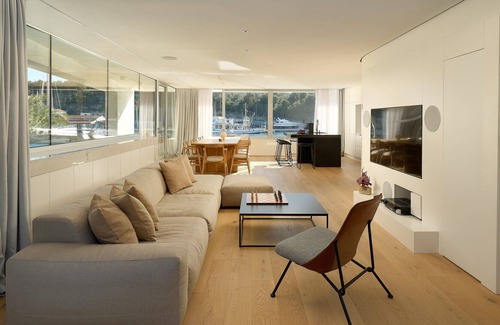 On the second floor of Luxury Villa Ellipse are 3 bedrooms and 2 bathrooms and on the top floor 2 bedrooms and one bathroom. All rooms have access to a balcony or terrace with fantastic views of the bay, harbor, and promenade.